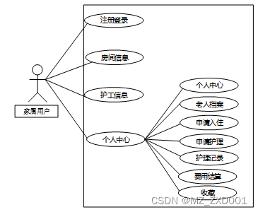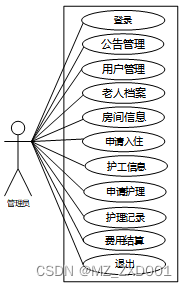 养老院管理系统中用户角色用例图如图2.1所示: