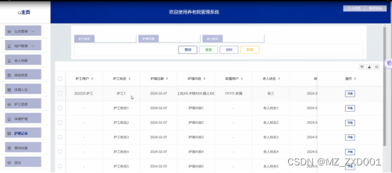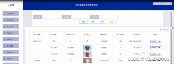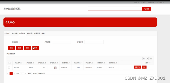 (7)护工信息:当管理员点击“护工信息”时,可查看护工信息列表,同时可对护工信息进行增删改查。