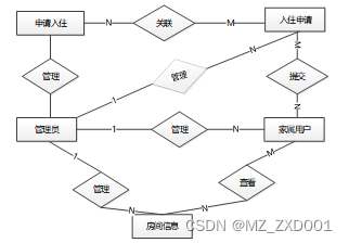 下面是整个养老院管理系统中主要的数据库表以及总E-R实体关系图。
