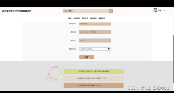 - 首页:学生登录后可以查看个人的相关信息,如姓名、年级、班级等,以及课程表和考试安排等内容,方便学生了解自己的学习和日程安排。