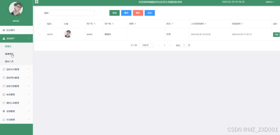 城镇居民社区再生资源回收系统中的管理员在“系统用”这一菜单是中可以对注册的用户以及管理员人员进行管控。界面如下图4.9所示。