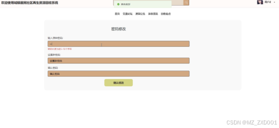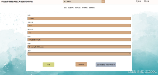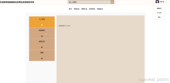 - 用户注册登录:普通用户注册并登录城镇居民社区再生资源回收系统,可对个人信息进行增删改查,比如个人资料、头像、密码修改。