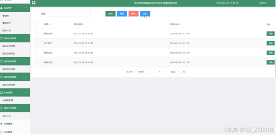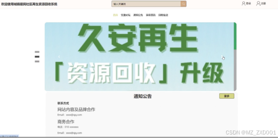 - 首页:用户注册登录后,可查看首页信息,包括(通知公告、回收站点推荐、环保咨询)