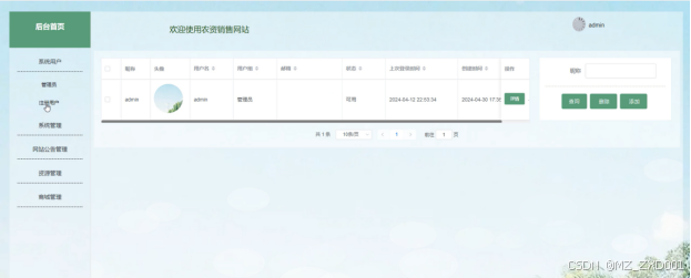 (3)系统用户:管理员可以对所有的用户账号信息进行增删改查。