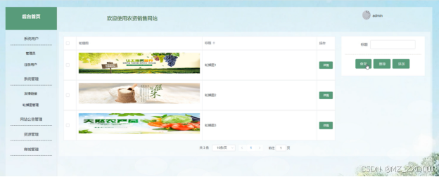 (4)系统管理:管理员可以对系统轮播图和友情链接进行管理,可以进行添加、查询、重置、删除操作。