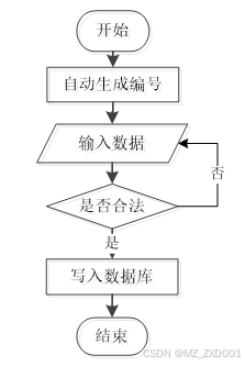 用户成功登入系统后就能够实现增加数据的操作,增加数据的编号是特定的,系统生成,用户不能随意填写,除了编号以外,其他增加信息用户自己填写,填写后的信息经过系统验证,验证合法通过就显示增加数据成功了,相反的话,就没有增加成功,增加数据的流程如下图2-3所示。