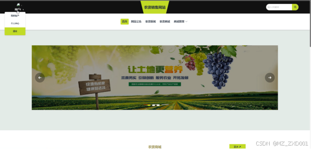 (2)首页:用户可以查看首页展示的轮播图、网站公告、农资新闻、农资商城等信息。