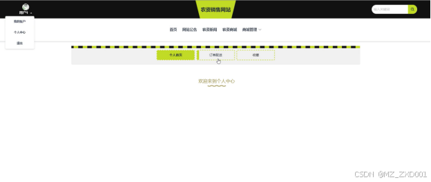 (7)我的:在前台点击“我的”下面的“我的账户”可以个人资料和密码进行修改,点击“个人中心”可以查看个人首页、订单配送和收藏信息。