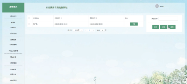 (6)资源管理:管理员定期更新平台上的农资新闻和新闻分类,可以进行添加、查询、重置、删除操作。