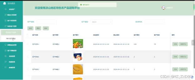 - 团购商品管理:管理员可以查看团购商品列表中某个农产品的详情和评论,可以对团购商品信息进行增删改查操作。