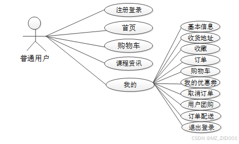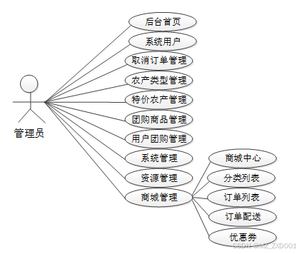 通过2.3功能的分析,得出了基于微信小程序的凉山地区特色农产品团购平台的用例图: