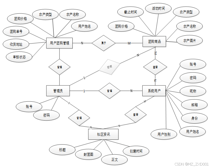 下面是整个基于微信小程序的凉山地区特色农产品团购平台中主要的数据库表总E-R实体关系图。