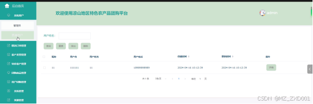 - 系统用户:管理员可以查看系统用户(管理员、普通用户)列表中某一用户的详情,可以对用户信息进行增删改查操作。