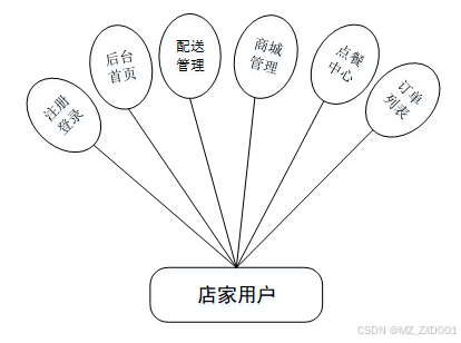 (2)店家用户,主要功能有:后台首页、配送管理、商城管理(点餐中心、订单列表)等,如图3-2所示。