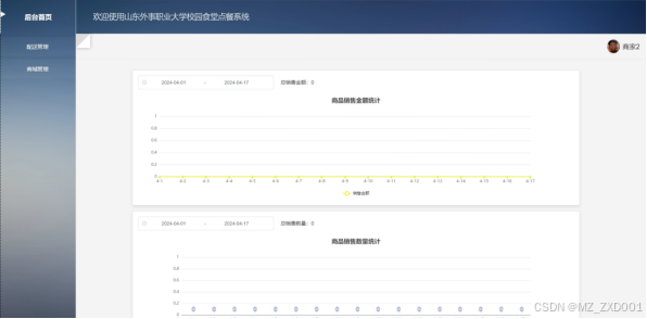 店家登录系统后台可查看会展示商品销售金额统计图和商品销售数量统计图,可以查看、修改个人基本信息和密码,管理功能有后台首页、配送管理、商城管理等功能,如图5-14所示。