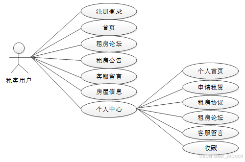 图2-1 房屋租赁管理系统租客用户角色用例图