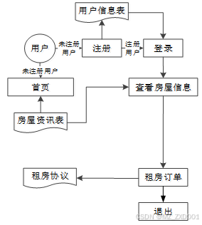 分析完房屋租赁管理系统的数据流,那么接下来我们来看系统的业务流程,图2-4就是业务流程图: