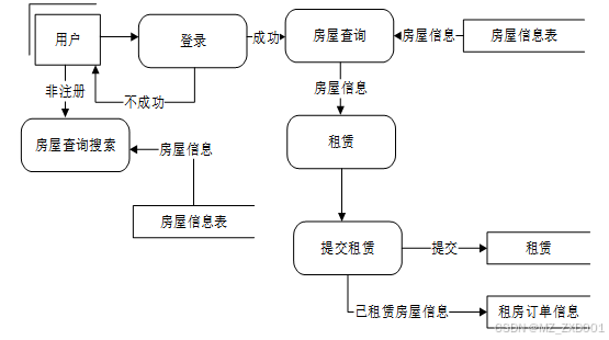 开发房屋租赁管理系统最主要的一个目的就是实现用户对房屋的租赁,图2-4就是系统的数据流图。