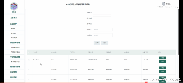 With the acceleration of urbanization and the increase of population mobility, the housing rental market has gradually become an important component of people's lives. In this market, the housing rental management system plays a crucial role. This system adopts MySQL as the main storage unit for backend data, and uses the SpringBoot framework and Java language for business system coding and development, achieving all functions of this system. The system mainly includes three modules: tenant user, landlord user, and administrator user functions.