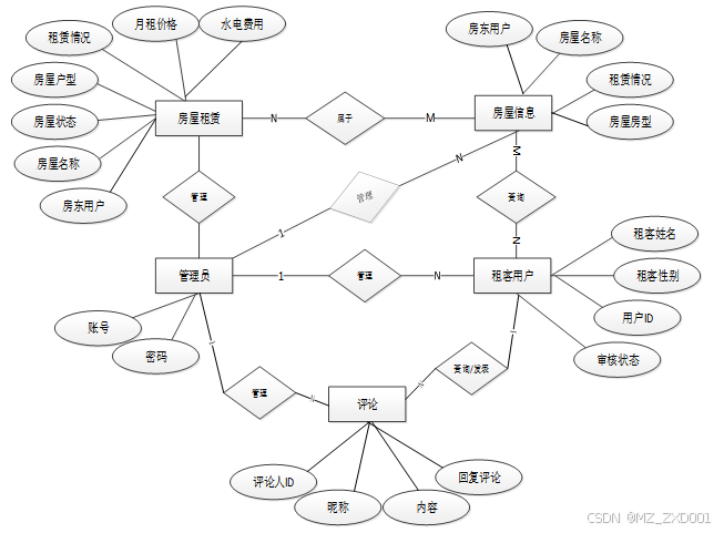 下面是整个房屋租赁管理系统中主要的数据库表总E-R实体关系图。
