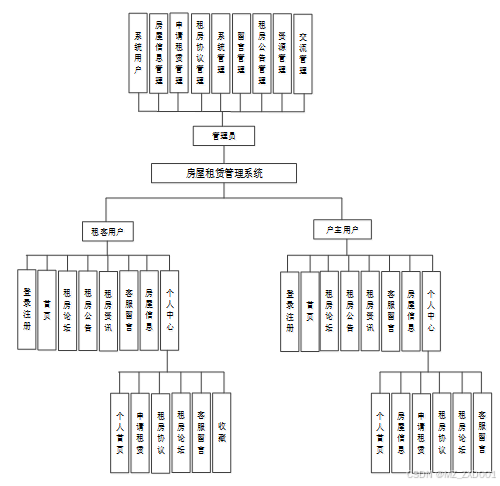 房屋租赁管理系统是中需要存储不少房屋信息,其模块功能结构,具体的结构图如下: