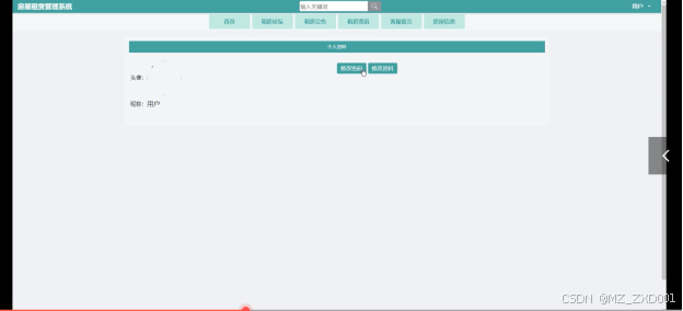 (7)个人中心:在“个人中心”这一菜单下,我们会看到个人首页、申请租赁、租房协议、租房论坛、客服留言、收藏,用户可以对其进行操作。
