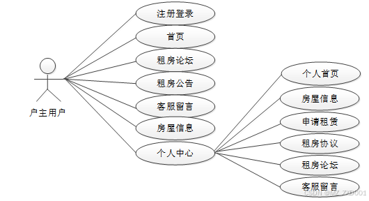 图2-2 房屋租赁管理系统户主用户角色用例图