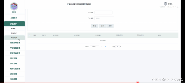 Keywords:JAVA; SpringBoot; Housing rental management system; MySQL