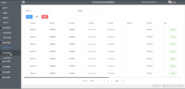 - 所有项目管理:可查看所有项目信息,进行查询操作,支持项目名称、项目类型搜索,点击可查看详情。