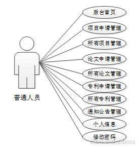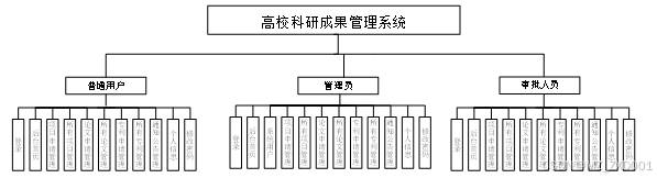 根据用户对系统的需求,要求系统简单操作,能够准确,完整的对信息进行管理。对高校科研成果管理做需求做解析后,划分为了普通用户、审批人员和管理员这三大功能板块。