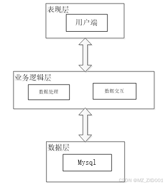 数据层(DL):由于本高校科研成果管理系统的数据是放在服务端的MySQL数据库中,因此本属于服务层的部分可以直接整合在业务逻辑层中,所以数据层中只有数据库,其主要完成本高校科研成果管理系统的数据存储和管理功能。