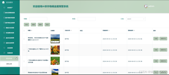 Keywords:Crop pest and disease warning system, Springboot framework, Vue;