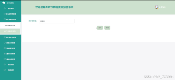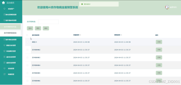 管理员可以管理农作物的种类信息,包括添加、编辑、删除种类等操作。界面如下图所示。
