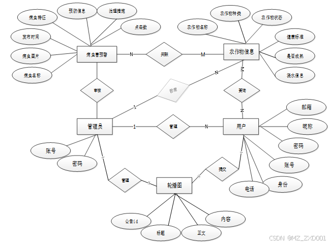 图3-3基于Vue+SpringBoot的 Al农作物病虫害预警系统总E-R图