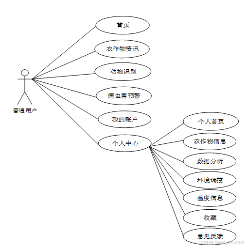 图2-1 基于Vue+SpringBoot的 Al农作物病虫害预警系统普通用户角色用例图