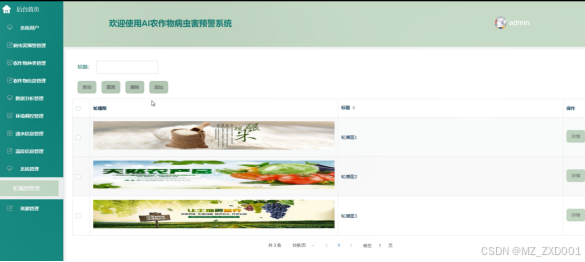 管理员可以管理系统首页的轮播图,包括添加、编辑和删除轮播图图片,以提升用户体验和宣传重要信息。如下图所示。