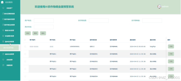 管理员可以管理农作物生长环境的浇水信息,包括浇水计划、记录等。界面如下图所示。