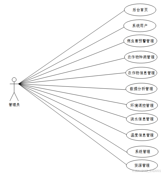 图2-2 基于Vue+SpringBoot的 Al农作物病虫害预警系统管理员角色用例图