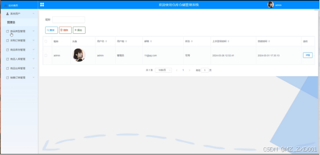 按照基于springboot的仓库仓储管理系统的角色,管理员作为系统的唯一用户,通过后台管理界面进行全方位的操作。