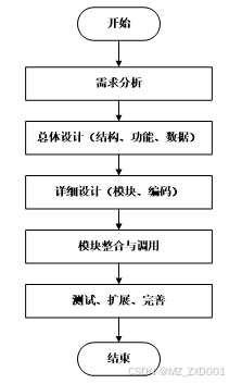 基于springboot的仓库仓储管理系统开发时,首先进行需求分析,进而对系统进行总体的设计规划,设计系统功能模块,数据库的选择等,本系统的开发流程如图2-1所示。