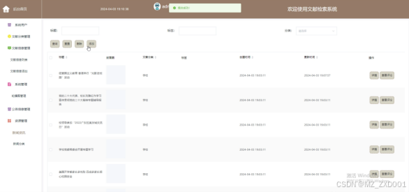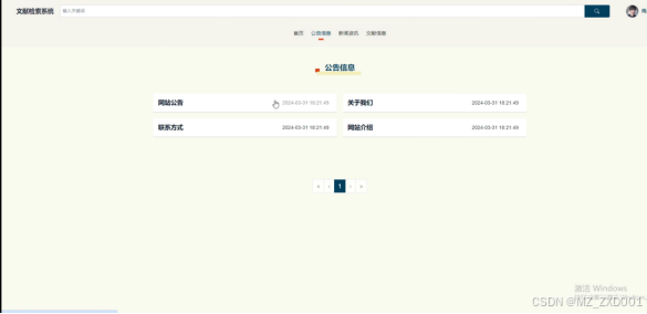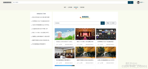 用户登录进入文献检索系统可以查看首页、新闻资讯、公告信息、文献信息等内容,如图4-11所示。