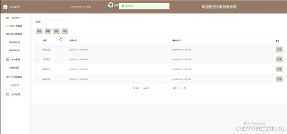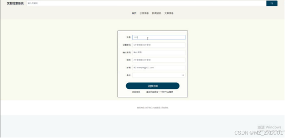 文献信息,在此页面可以查看文献信息列表等,如图4-3所示。在注册页面通过填写用户账号、密码、用户姓名、手机等信息完成用户注册,如图4-4所示。