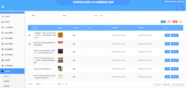 通过在线问卷,工作用户能够深入了解戒毒人员的心理状态、需求变化,为制定个性化的戒毒康复方案提供科学依据。同时,工作用户可以添加、删除、查询、重置、评分问卷。资源管理如下图5-11所示。