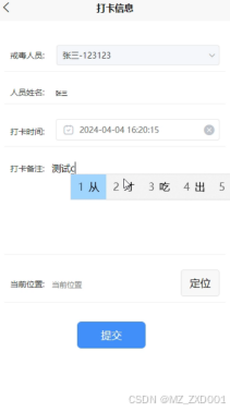 - 打卡信息功能:打卡信息功能是记录戒毒人员日常戒毒进度的关键工具。戒毒人员每天可以在小程序上打卡,记录他们的戒毒行为、感受和收获。这些打卡信息不仅可以帮助戒毒人员自我监督,还可以让社区工作用户了解他们的戒毒情况,并提供相应的支持和帮助。
