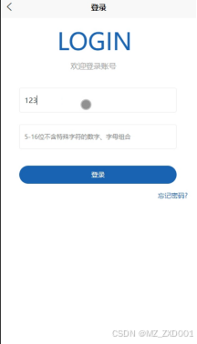 社区戒毒人员心理健康微信小程序中的前台上注册后的用户是可以通过自己的用户名+密码进行登录的,当用户输入完整的自己的用户名+密码信息并点击“登录”按钮后,将会首先验证输入的有没有空数据,再次验证输入的用户名+密码和数据库中当前保存的用户信息是否一致,只有在一致后将会登录成功并自动跳转到社区戒毒人员心理健康微信小程序的首页中;否则将会提示相应错误信息,用户登录界面如下图5-2所示。