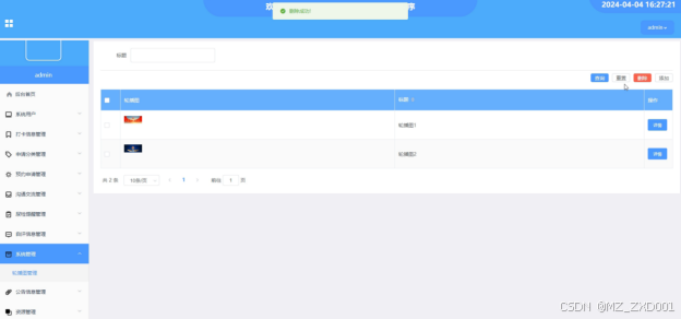 - 系统管理:系统管理模块是社区戒毒人员心理健康微信小程序的前台轮播图管理,管理员可以在此创建、编辑和删除轮播图。