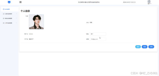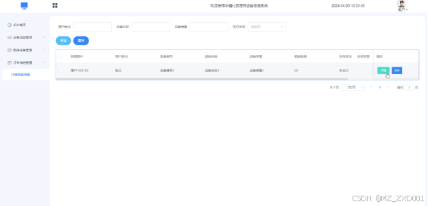 The convenient equipment rental system in this happy community has two roles: administrator and ordinary user. The administrator functions include system user, device type management, device information management, rental device management, order information management, etc. The user functions include device information management, rental device management, order information management, etc., so it has certain practicality.