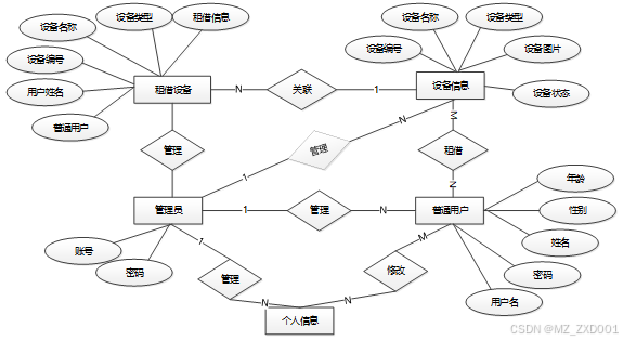 下面是整个幸福社区便民设备租借系统中主要的数据库表总E-R实体关系图。