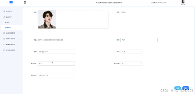 系统用户:管理员负责管理系统的用户,包括管理员和普通用户的登录、权限分配等操作。他们可以添加、编辑、删除或审核用户账户,并设定相应的权限。系统用户管理界面如下图所示。