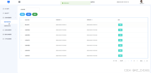 设备类型管理模块:管理员执行设备类型信息管理,可以添加、编辑和删除设备类型信息。设备类型管理界面如下图所示。